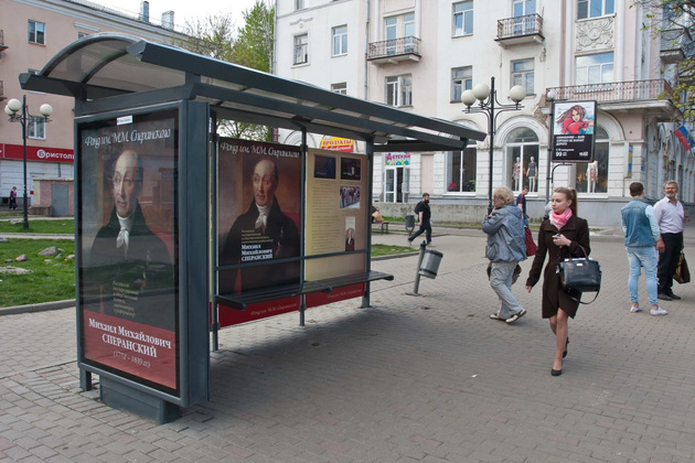 Остановка «Гостиница «Владимир» будет информировать о Сперанском до 22 мая, если организаторы акции не оговорятся о продлении акции.