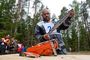 Вот хоть взять подготовку бензопилы... Надо быстро снять и надеть цепь. Затем - два этапа раскряжевки, распиливания поперек горизонтально лежащего бревна. Сначала - комбинированным срезом, затем ‑ на точность. Здесь важно соблюсти угол среза в 90 градусов по всей ширине ствола. За любую ошибку участник получал штраф.