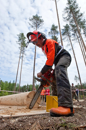- В лесной отрасли тоже остра кадровая проблема - именно с рабочими специальностями, потому что работа тяжелая и опасная. Задача конкурса - популяризировать профессию лесоруба. Далеко не каждый ее может освоить...