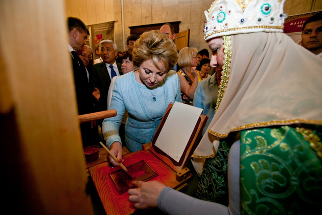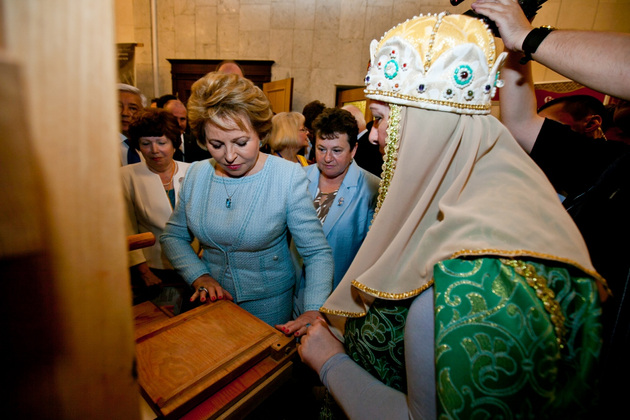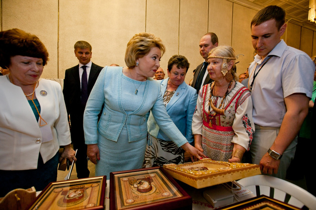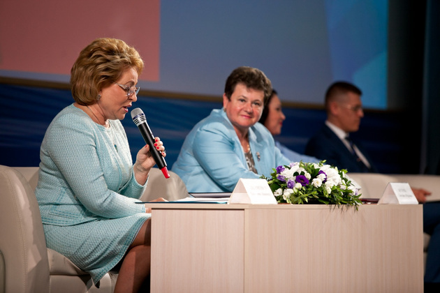 Губернатор Светлана Орлова свое выступление начала с приветствия от председателя оргкомитета Праздника семьи, любви и верности Светланы Медведевой. Затем Орлова поблагодарила Матвиенко за постоянное внимание к сфере культуры.