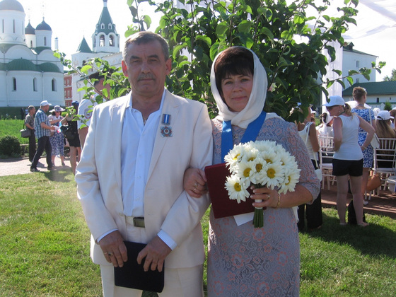 …Владимир Васильевич и Татьяна Николаевна Сакеевы ‑ одни из награжденных. В этом году отметят золотую свадьбу. Они воспитали двоих детей, теперь занимаются внуком. Глава семьи был учителем физкультуры, супруга ‑ мастером цеха на заводе имени Орджоникидзе. На вопрос, в чем же секрет семейного счастья, ответили: