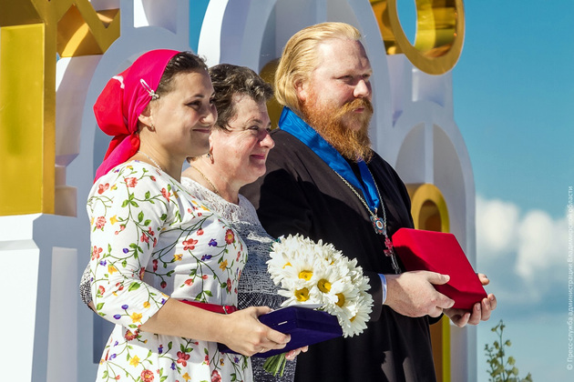 Кульминацией праздника стала торжественная церемония вручения памятных медалей «За любовь и верность», областных сертификатов за 50 прожитых вместе лет и почетного знака АВО «Родительская слава Земли Владимирской». Пригласили 35 семей из районов области. Происходило действо на площадке у Спасо-Преображенского мужского монастыря, где гостей словами «Любовь все побеждает!» встречал епископ Муромский Нил. Награды вручали Александр Беглов, Сергей Рябухин и Светлана Орлова.