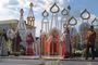 Площадку у большого фонтана заняла торгово-ремесленная ярмарка. Свои работы привезли более 700 мастеров из 78 городов 46 регионов страны. Особым спросом пользовались платки, платья и батики мастериц из Кольчугина, они создали к празднику коллекцию шелковых платков с ромашками.