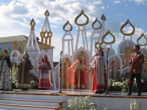 Награждение сопровождалось показом русских национальных нарядов «Русь Владимирская» от мастериц-дизайнеров Оксаны Шевцовой (Кольчугино) и Елены Лопатухиной (Суздаль).