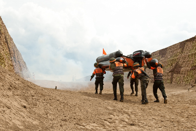 Антураж был впечатляющий: в небе проносились боевые вертолеты и самолеты, гремели взрывы, солдаты строчили из пулеметов и автоматов.