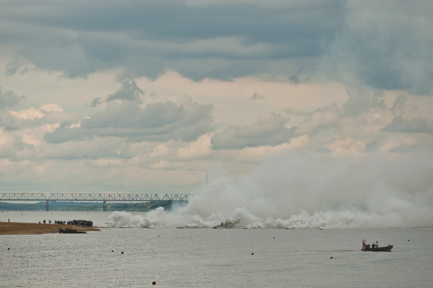 - Радует, что среди тысяч зрителей сегодня много молодежи. Это важно для патриотического воспитания настоящих, грамотных, любящих Родину и нашу армию защитников Отечества. Нам повезло, что у нас такая замечательная река, и что на ней создан такой замечательный полигон.