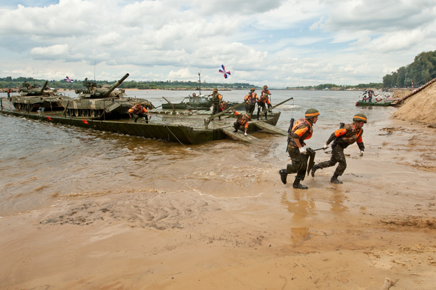 Но это удалось. Понтонеры 45-й бригады из Мурома заняли первое место и получили право соперничать с китайцами и сербами. На втором месте - бригада из Ростоваи, на третьем — полк из Ленинградской области.