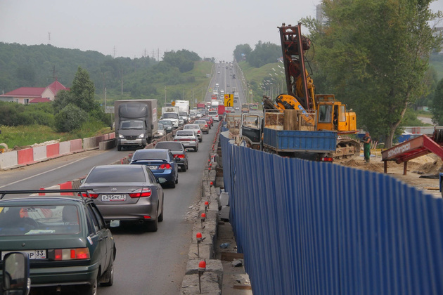 Сейчас строительство возобновилось. На следующей неделе планируют перекрыть все пролеты и приступить к реконструкции подходов. В конце августа ‑ начале сентября машины пустят по свежеотремонтированной части моста, что незначительно ускорит поток на этом узком участке. А закончить капремонт моста теперь обещают в ноябре.