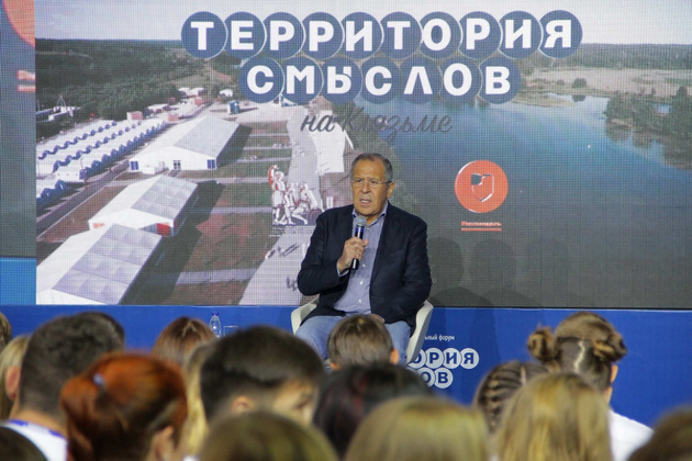 Лавров был на «Территории смыслов» и в прошлом году - министр придает огромное значение публичности и открытости деятельности внешнеполитического ведомства. На этот раз его визит начался с экскурсии по экспозиции, посвященной социально-экономическому потенциалу нашего региона. Естественно, ее для Лаврова и руководителя Федерального агентства по делам национальностей Игоря Баринова провела губернатор Светлана Орлова. Затем в сопровождении руководителя Росмолодежи Сергея Поспелова делегация осмотрела и площадку форума.