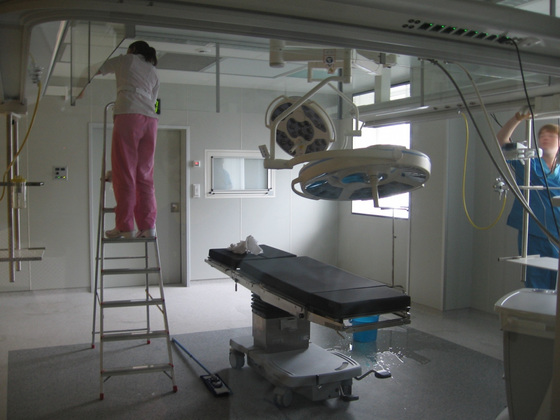 Восьмой этаж, где находятся только операционные, еще готовится к принятию больных. Идут последние работы по наладке оборудования.