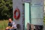 На пляже стоят два биотуалета и несколько автомобилей. Аншлаг с запретом купаться тоже на месте. А вот поста мы не увидели. Людей немного, но это, что называется, завсегдатаи. Некоторые даже познакомились и подружились именно здесь. А некоторые и любовь здесь нашли. Теперь ходят каждый день все лето и никаких последствий не ощущают. Смеются: