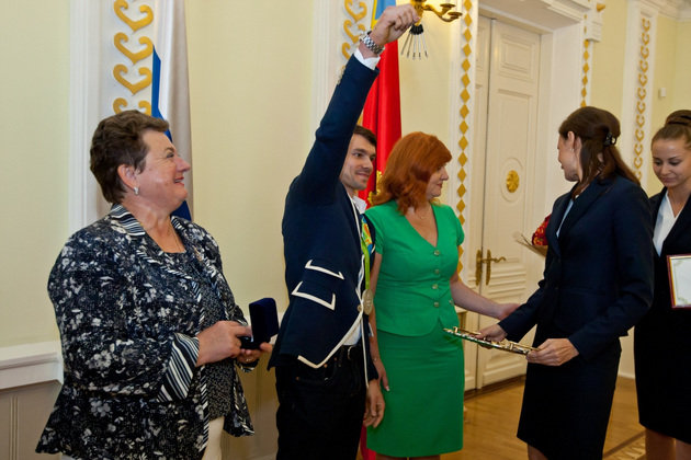Но отдых для Николая Куксенкова начался с участия в городском празднике, посвященном Дню физкультурника. А в понедельник его уже чествовало руководство региона. Губернатор Светлана Орлова, не скрывая гордости за спортсмена, вручила ему ключи от трехкомнатной квартиры.