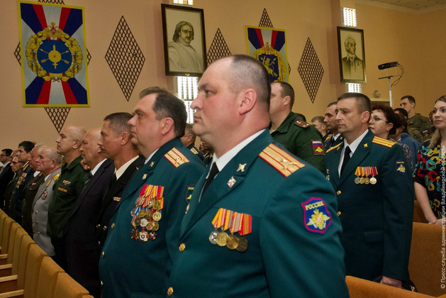 На торжественном собрании состоялась церемония награждения офицеров соединения за высокие результаты в служебной деятельности и большую работу по военно-патриотическому воспитанию молодежи. Почетные грамоты и благодарности администрации Владимирской области военнослужащим вручил Алексей Конышев.