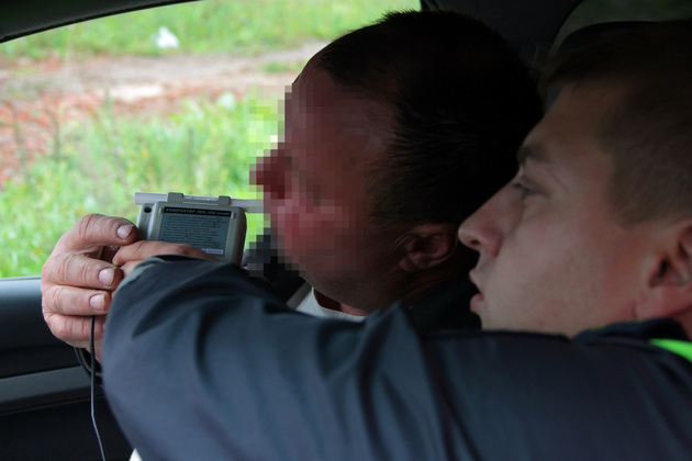 В Суздальском районе, на втором километре дороги Владимир - Юрьев-Польский, в этот час кроме нашего работают еще два экипажа. В одном из них ‑ главврач областного наркодиспансера Лариса Захарова. Оказывается, наркологи часто участвуют в рейдах УГИБДД. И, кстати, в случае несогласия нарушителей на освидетельствование их везут именно в наркодиспансер. Впрочем, водитель, уже задержанный вторым экипажем, ведет себя адекватно: не скандалит, мирно дует в трубочку до щелчка, после чего прибор неумолим - почти двукратное превышение нормы. Спрашиваем, что теперь?
