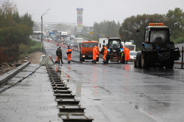 В ночь с 23 на 24 сентября движение переключено на отремонтированную часть моста. Здесь еще предстоит устроить тротуары, освещение, установить барьерное ограждение, однако эти работы будут происходить без ограничения движения и не повлияют на пропускную способность моста (ширина проезжей части составит две полосы для движения в противоположных направлениях по 3,75 м).