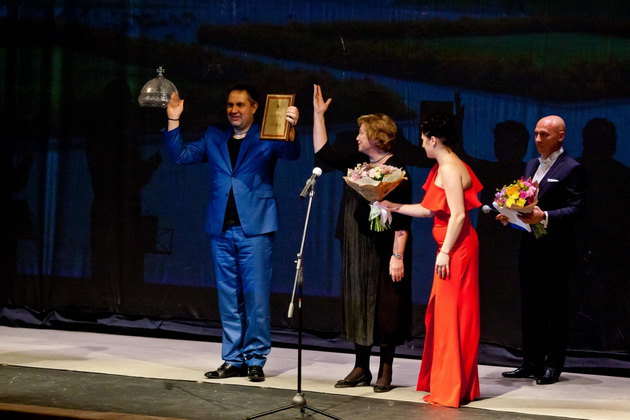 На церемонии награждения, которая длилась около часа и стала сама по себе занимательным театральным действом, царило удивительное единодушие между членами жюри и публикой. Прологом стало вручение приза зрительских симпатий. Под овации зала председатель жюри народная артистка Евгения Симонова пригласила на сцену гостей с юга. Наиболее высоко публика оценила постановку по пьесе А.Островского «Доходное место» Севастопольского академического русского драматического театра им. А.В.Луначарского. А их земляки - Драмтеатр Черноморского флота РФ им. Б.Лавренева - и вовсе сорвали куш. Спектакль «Игроки» по пьесе Н.В.Гоголя получил Гран-при и Большую хрустальную шапку Мономаха.
