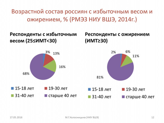 Есть еще важный момент ‑ ожирение стремительно молодеет. Если раньше в группе риска находились люди старше 30 лет, то на сегодняшний день лишний вес сопровождает более 1,5 млрд человек в мире после 20 лет, из них 500 млн живут с ожирением.