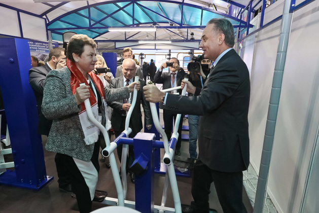 На выставке «Современный спорт: инновации и перспективы» министр спорта Виталий Мутко и губернатор Светлана Орлова опробовали тренажеры, выпущенные в России.