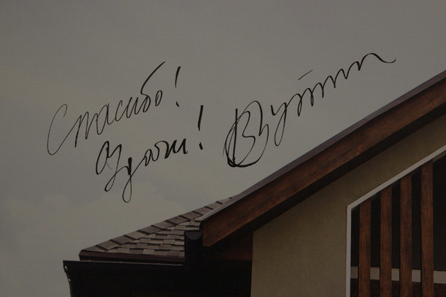 Прибыв в Доброград, Президент России оставил автограф на стенде, посвященном развитию этого спортивного курорта: «Спасибо! Удачи! В.Путин».