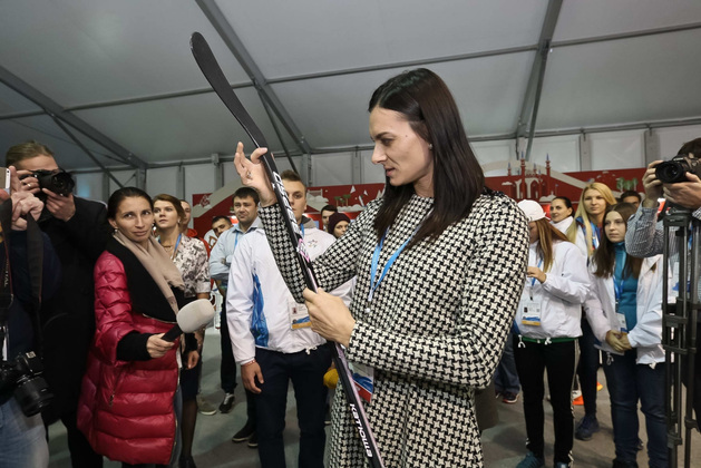 Прыгунья с шестом Елена Исинбаева была на форуме впервые в качестве члена Совета по развитию физической культуры и спорта при Президенте РФ. На выставке она с интересом знакомилась с новым спортивным инвентарем отечественного производства.