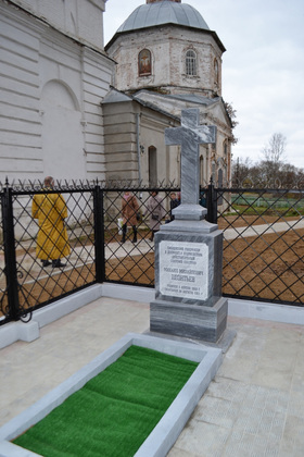 Несколько лет назад гимназисты под руководством отца Алексия Головченко взяли шефство над захоронением Михаила Леонтьева. Еще недавно о его могиле у храма напоминал холмик с бесформенным куском гранита.