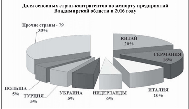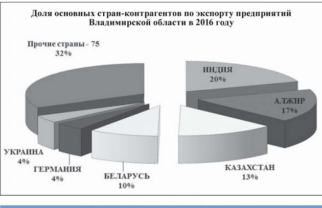 По данным Владимирской таможни, наши главные партнеры по экспорту в 2016 году - Казахстан, Беларусь, Германия, Индия, Алжир. По импорту - Китай, Германия, Италия, Нидерланды.
