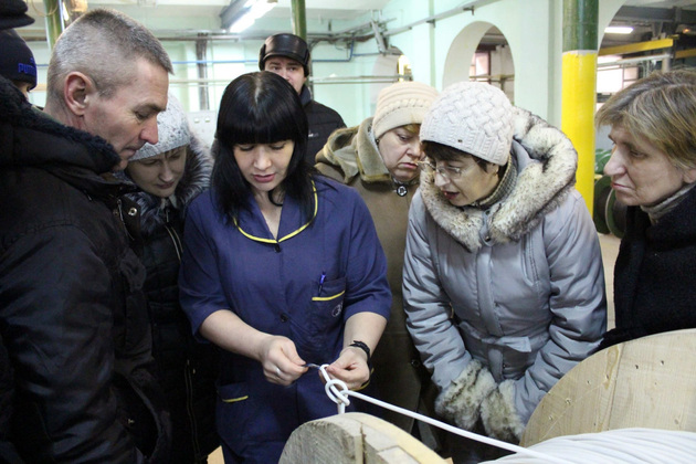 Инженер-технолог цеха № 5 Елена Ахметсафена приглашает прибывших на экскурсию. Именно ей как одному из самых грамотных и профессиональных работников завода поручено рассказать будущим коллегам о кабельном производстве. Не секрет, что первое впечатление порой бывает самым сильным, и задача Елены, человека, любящего свое дело, передать позитивное отношение к работе и заводу. Уже через некоторое время напряженность среди пришедших на экскурсию спала, и все с интересом слушали рассказ технолога, вникали в производственный процесс.