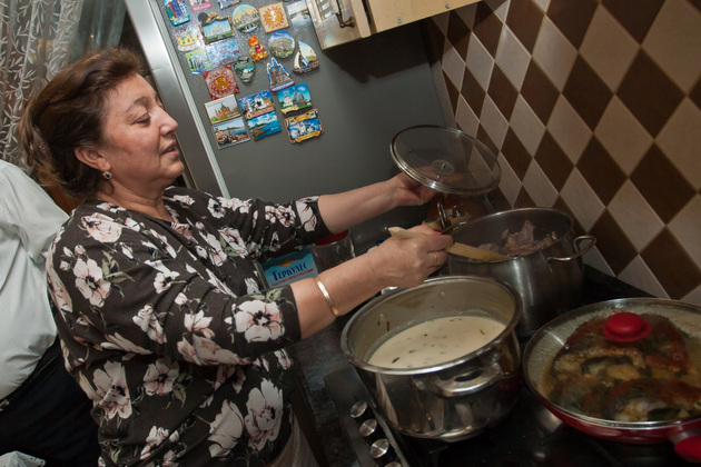 Пока хозяйка дома Кудрат Кадоевна готовила грар (два яйца, два литра кефира, 200 грамм воды, полчаса обязательно непрерывно перемешивать - иначе кефир свернется, потом добавить вареную перловку и варить еще 10 минут, а уже потом посыпать суп рубленой зеленью и накрыть крышкой), Самвел Саидович посвящал нас в некоторые традиции езидского национального застолья.