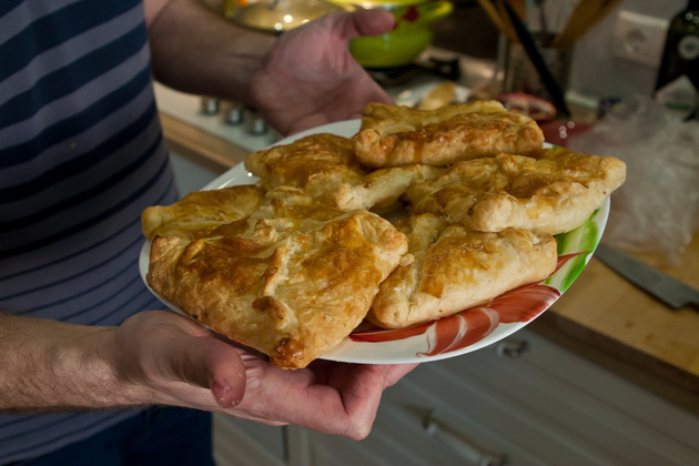 К большим торжествам начинают готовить накануне и приглашают в помощь соседей. Амиран в помощь звал не соседей, а супругу Светлану. Она, кстати, русская, но основы грузинской кухни освоила. Так что к тому моменту, когда мы поставили на плиту чакапули, уже подоспела хашлама - блюдо с летним вкусом из вареной говядины, приправленной сырым репчатым луком, свежей зеленью, винным уксусом и украшенное зернами граната. Светлана научила нас еще делать хачапури и фаршированные сыром шампиньоны. Амиран параллельно провел дегустацию грузинских напитков: от боржоми и лимонада «Тархун» до чачи. Так что два часа до прихода гостей мы не скучали.
