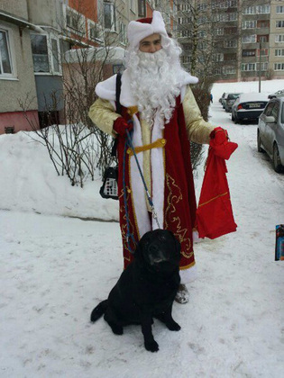 А в канун Нового года потерявшегося лабрадора взял на передержку Дед Мороз. Он приехал к ребятишкам на утренник и увидел несчастного замерзшего пса. Благодаря колоритному снимку, разлетевшемуся по Интернету, хозяйка собаки нашлась через два часа.