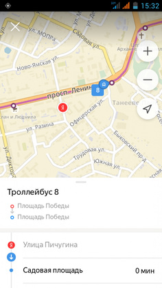 Что для этого надо? Найти на карте города свою остановку. Приложение выдает список доступных на ней маршрутов и количество минут до прибытия транспорта. Можно детализировать информацию по конкретным маршрутам. Например, если выбрать «троллейбус № 8», сразу будет видно, через сколько минут к остановке подойдут ближайший и следующие два. А на карте можно отследить движение транспорта в реальном времени. Стало гораздо удобнее принимать решение: стоит ли ехать с пересадкой или дождаться «своего» автобуса. Планировать поездки стало гораздо проще. Приложение рассчитывает время следования до пункта назначения и показывает пробки.