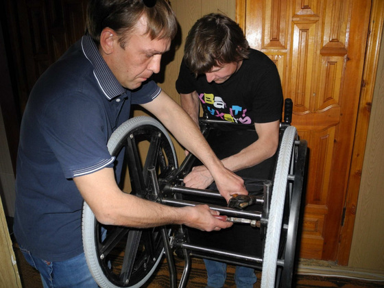 Олег Минин - одноклассник Дмитрия, ветеран второй чеченской кампании. Он закреплен за руководителем организации инвалидов-опорников «Надежда» Валентиной Николаевной Дьяченко. Раз в неделю на протяжении полутора лет поступает в ее распоряжение, чтобы в буквальном смысле слова носить на руках, куда на коляске добраться невозможно.