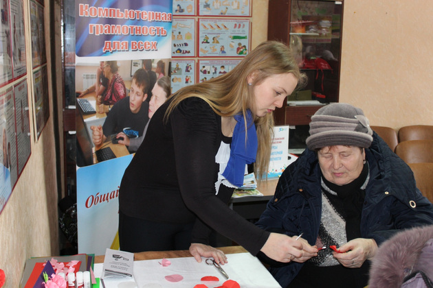 На площади перед зданием администрации активно предоставляли услуги мобильные лаборатории Пенсионного фонда и Центра занятости. Здесь же угощали горячим чаем с сушками. Все желающие смогли поучаствовать в виртуальном путешествии по городам Владимирской области, получить консультации в работе на компьютере, принять участие в мастер-классах (например, смастерить брошку из органзы или оригами из бумаги). Приятным сюрпризом стало выступление коллектива из Оргтрудовского дома‑интерната.