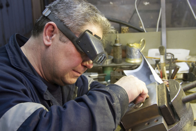 - Работа кропотливая, долгая, трудоемкая и очень ответственная: чуть ошибешься ‑ вещь испорчена. Раньше еще сложнее было ‑ вся гравировка только ручная. А сейчас станками рисунок наносится. Но чем сложнее и интереснее рисунок, тем больше приходится дорабатывать, что по гравировке, что по чеканке. Есть и такие вещи, где машина и вовсе бессильна перед человеком, - считает опытный мастер.