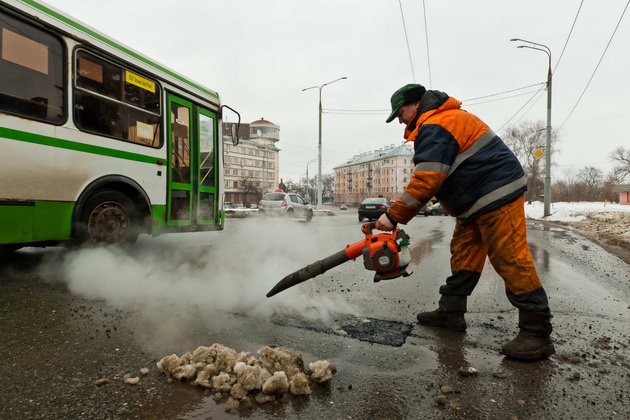 - Ругают... А некоторые хвалят. На всех не угодишь! Мы философски к этому относимся, с улыбочкой ко всем, - говорит он и отправляется к следующей яме. Сегодня он залатает их около сотни. И так каждый день.