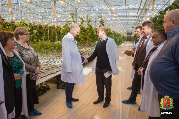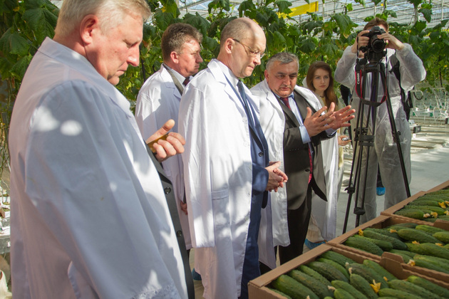 Председатель ЗС Владимир Киселев вместе с руководителями района Виктором Шурыгиным и Сергеем Великоцким посетили частный тепличный комбинат, открытый три года назад. Сегодня здесь не только увеличились площади, но и возросли объемы экологически чистой продукции. Производство автоматизировано, процессами управляет компьютер. Удобрения подбираются по нормативам. Но, несмотря на современные технологии, 5 га плантации огурцов опыляют с помощью пчел и шмелей. Не так давно комбинат модернизировал систему освещения и увеличил в теплицах «световой день», что позволит собирать урожай до 60-70 килограмм с квадратного метра. Планируется расширение ассортимента плодовых культур. Сейчас в качестве эксперимента в теплице выращивают клубнику, дыни и арбузы.