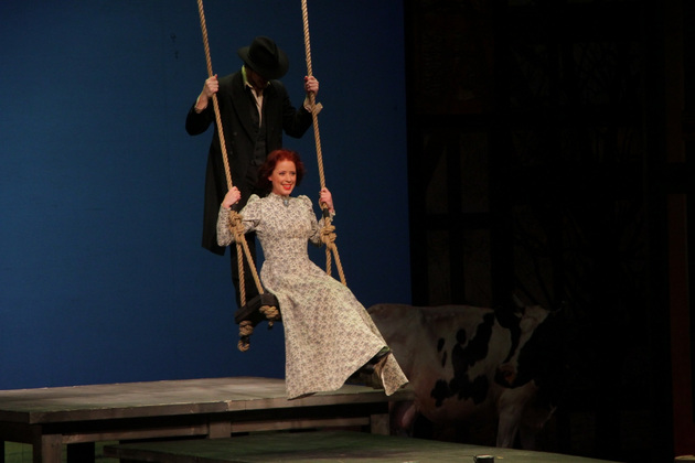Действие происходит в Новой Англии, в середине XIX века. На аккуратной ферме, полной всякой живности, массивных деревянных построек и окруженной восхитительными ландшафтами. Художник-постановщик Станислав Шавловский сумел в рамках одной сцены декором и играми света и тени показать всю эту природную красоту, «обрамленную» то бегущими облаками, то восхитительным звездным небом. Честное слово - атмосферно со сцены даже классическими «Унесенными ветром» повеяло!
