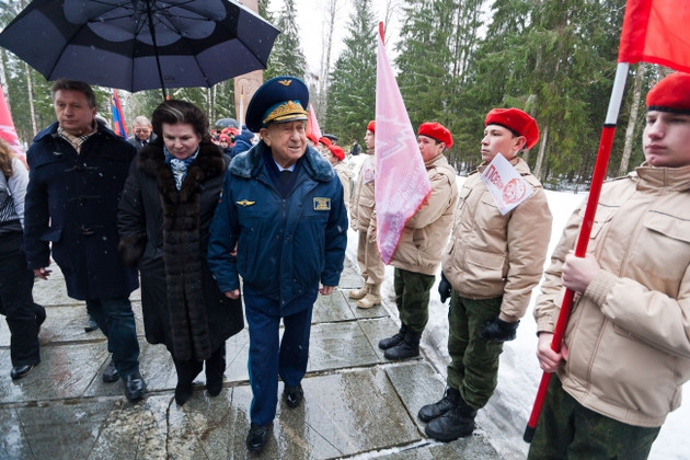У мемориала близ деревни Новоселово собралось в этот день немало высоких гостей - летчики-космонавты, дважды Герои Советского Союза Алексей Леонов и Борис Волынов, первая женщина-космонавт, Герой Советского Союза Валентина Терешкова, народный артист СССР и РФ, депутат Госдумы Иосиф Кобзон, заместитель губернатора, руководитель аппарата областной администрации Александр Лобаков.