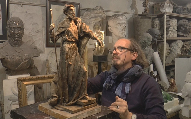 Фото с сайта http://russtriedin.ru (на фото скульптор Василий Селиванов с макетом памятника)