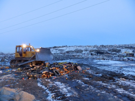 Уж мы их давили, давили... В Муромском районе на полигоне ТБО возле деревни Максимовка с помощью бульдозеров уничтожили почти триста килограммов продуктов, запрещенных к ввозу на территорию России.