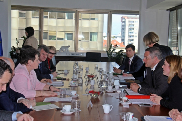 12 апреля в рамках официального визита делегации Владимирской области в Словению губернатор Светлана Орлова встретилась с заместителем председателя правительства республики, министром сельского, лесного хозяйства и пищевой промышленности Словении Деяном Жиданом и министром экономического развития и технологий Словении Здравко Почивалшеком. В переговорах принимали участие: вице-губернаторы Александр Лобаков, Роман Русанов и Елена Мазанько, председатель комитета по промышленной политике, науке и импортозамещению Виталий Лонский, президент группы компаний «Аскона» Владимир Седов, генеральный директор компании «Муром» Ольга Тихонова и посол России в Словении Доку Завгаев.