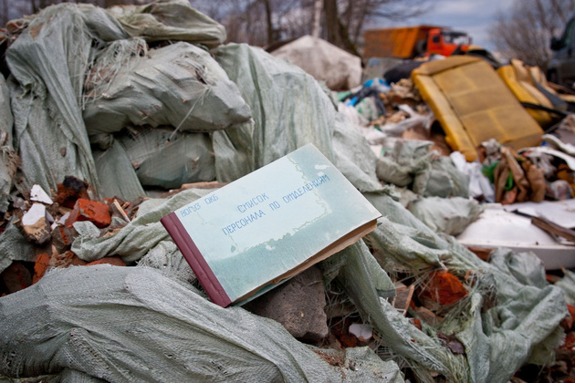 Мигачев бесстрашно взобрался на мусорный курган и нашел неопровержимые улики: журналы, в том числе отпуска психотропных и наркотических средств, Областной клинической больницы.