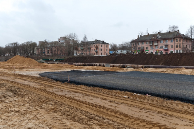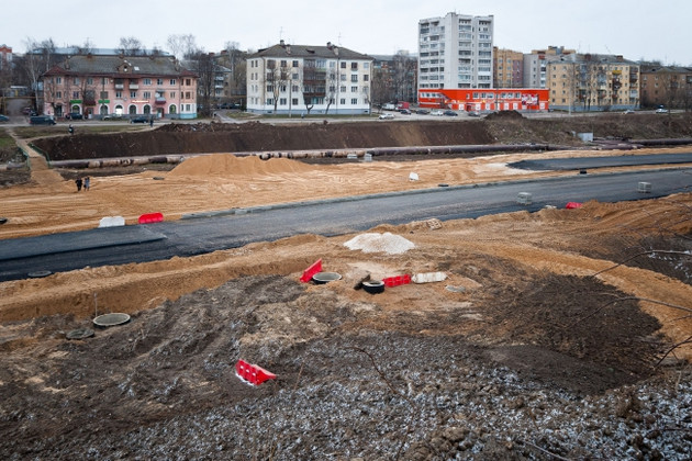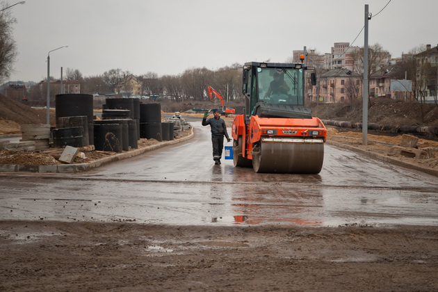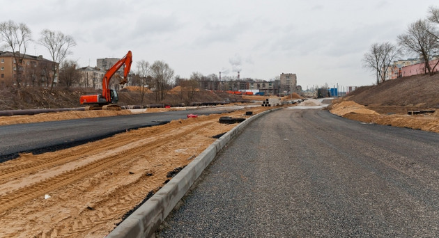 На последнем участке Лыбедской магистрали в районе площади Фрунзе начали укладывать асфальт.