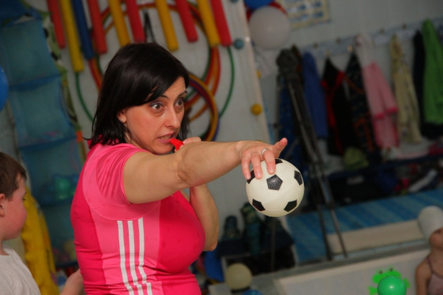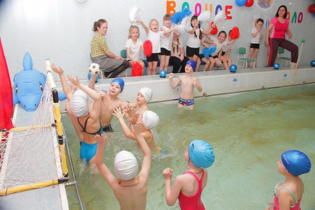 ... И вот энергичный инструктор по плаванию Ольга Ращупкина выстраивает команды «Дельфин» и «Морской конек» для матчевой игры. Звучат приветствия. На стене девиз: «Победил - не зазнавайся. Проиграл - не унывай!»