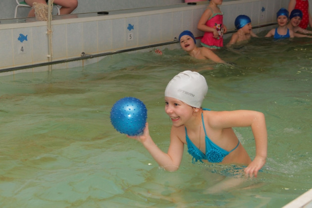 «Спорт - это здорово! Хочешь быть красивым - плавай!» - эти правила ребята уже усвоили. Вначале - разминка с различными гимнастическими элементами, брызгами во все стороны и веселым визгом. Затем тренировочный игровой тайм в воде с мячами...
