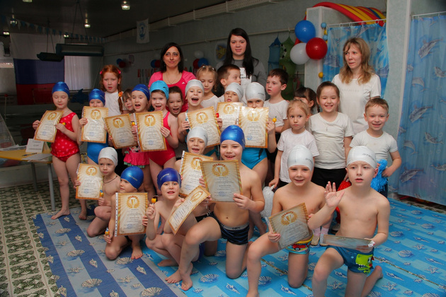 ... Маленькие «дельфинята» и «морские коньки» не только умеют плавать в свои 6-7 лет, но и с легкостью выполняют довольно сложные упражнения в воде. «Звездочка», «поплавок», скольжение на груди и спине в их исполнении заслуживают восхищения. Впрочем, восхищения и аплодисментов на турнире хватало - в качестве болельщиков были не только дети, но и родители - их тоже пригласили. Некоторые из мам и пап держали в руках плакаты со спортивными лозунгами, кто-то - младших сестренок и братишек пловцов-спортсменов.