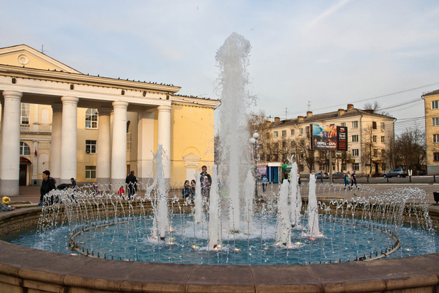Первым запустили музыкальный фонтан перед Дворцом молодежи на ул. Мира.