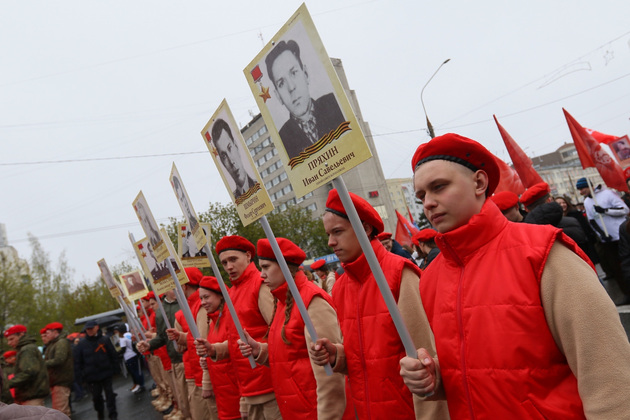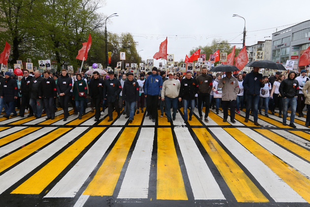 Владимирцы с гордостью несли портреты своих родных и близких, участвовавших в той войне. Почти в каждой владимирской семье есть фронтовики, память о которых чтут. Многие участники праздничного шествия не могли сдержать слез: ведь, как справедливо у нас говорят, «это праздник со слезами на глазах», потому что май 1945 года был оплачен миллионами жизней солдат и гражданских, колоссальной разрухой страны, сломанными судьбами целых поколений.