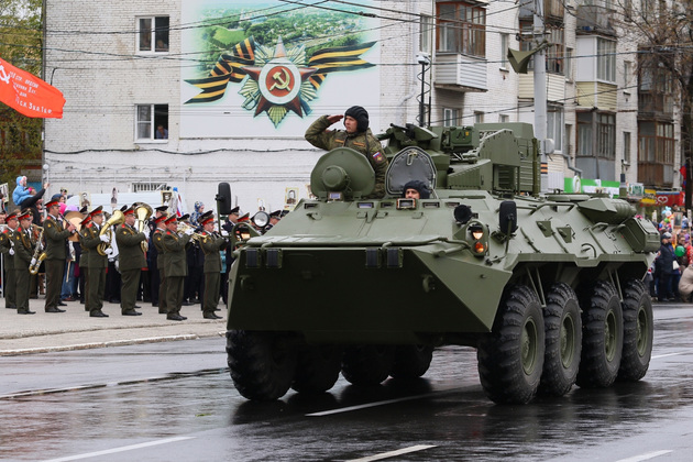 После Минуты молчания в память о владимирцах, павших за свободу и независимость нашего Отечества, и возложения цветов к Вечному огню начался военный парад, которым командовал начальник Владимирского гарнизона, командарм 27-й гвардейской ракетной Витебской Краснознаменной армии гвардии генерал-майор Игорь Фазлетдинов. В параде участвовали войска Вооруженных сил РФ, части Национальной гвардии России, УМВД, МЧС, ФСИН, офицеры и курсанты ВЮИ, кадеты школы-интерната имени Дмитрия Пожарского из Радужного. Впервые - и сводный отряд «Юнармии».
