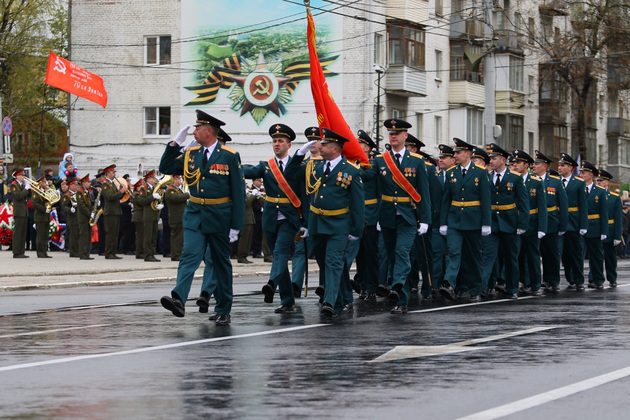 Формат празднования Дня Победы во Владимире имеет свою изюминку. У нас шествие традиционно открывает молодежь, которая несет громадную реплику знамени Победы (штурмовой флаг 150-й стрелковой ордена Кутузова II степени Идрицкой дивизии 79-го стрелкового корпуса 3-й Ударной армии 1-го Белорусского фронта. - Прим. авт.). Далее едет машина марки «Победа» с владимирскими номерами ‑ автомобиль участвовал в масштабной акции «Звезда нашей Великой Победы».
